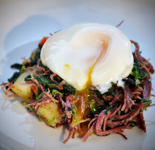 Clear sunny skies = good lighting, and, of course, that means I had to make a good breakfast to photograph. So, in honor of the corned beef and cabbage my mama gave me on St. Patrick's day, I HAD to make corned beef hash! How could I not?